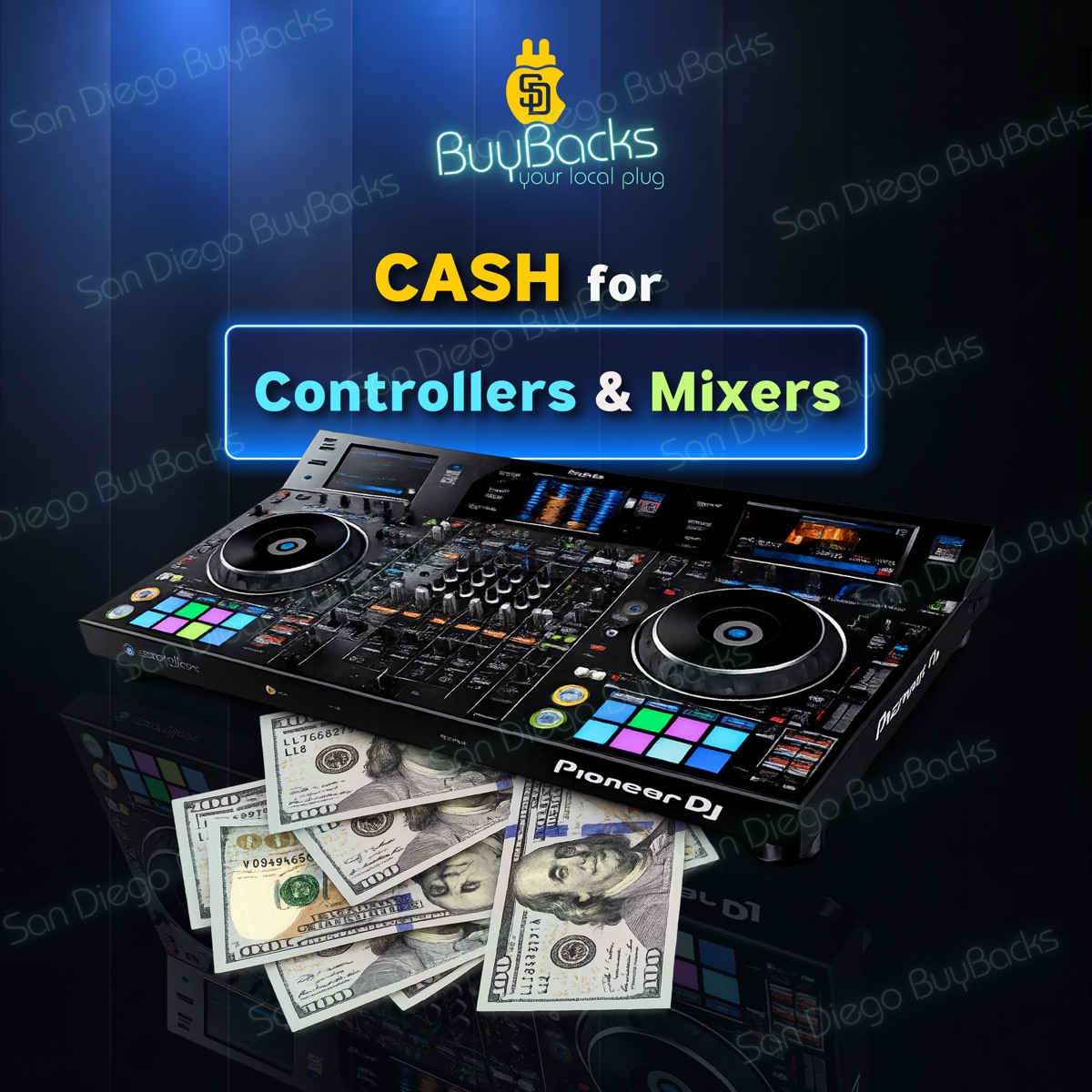 Audio gear — DJ controllers, studio monitors, microphones, Sonos speakers, premium headphones — has a devoted secondary market. San Diego BuyBacks buys DJ controller from producers, DJs, and audio hobbyists across National City and San Diego County. Pro audio and DJ gear from Pioneer, Technics, Shure, Neumann, and Universal Audio hold value especially well.